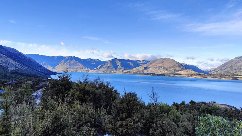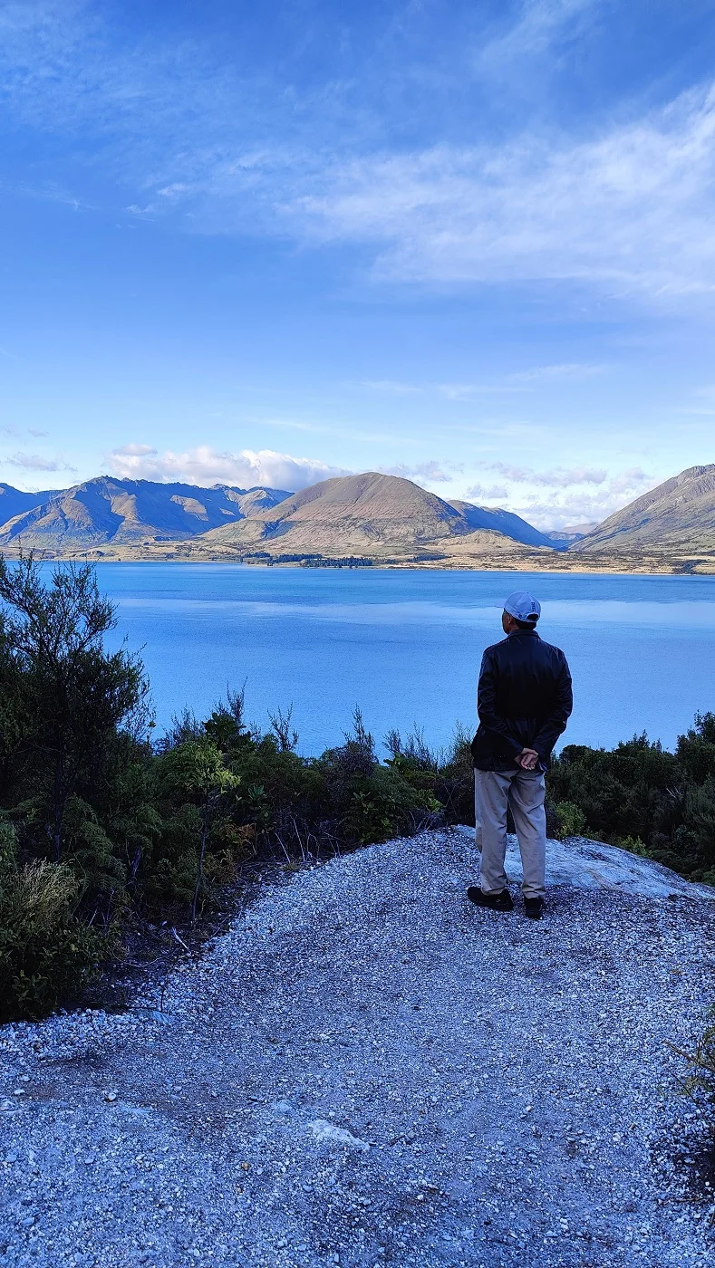 一路沿着新西兰最长的湖,瓦卡蒂普湖(Lake Wakatipu)前行。左面碧蓝湖水相伴、右侧高山依偎,风景奇佳。