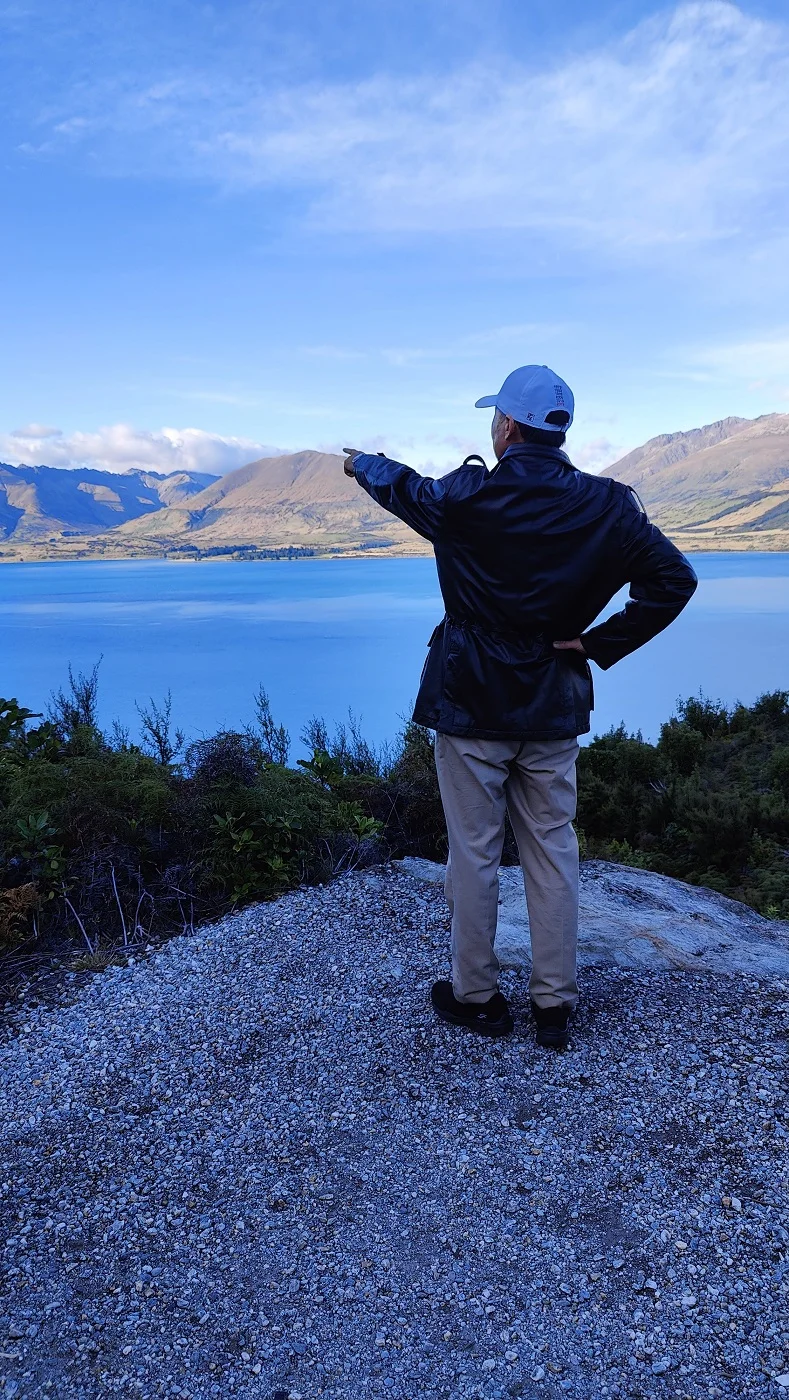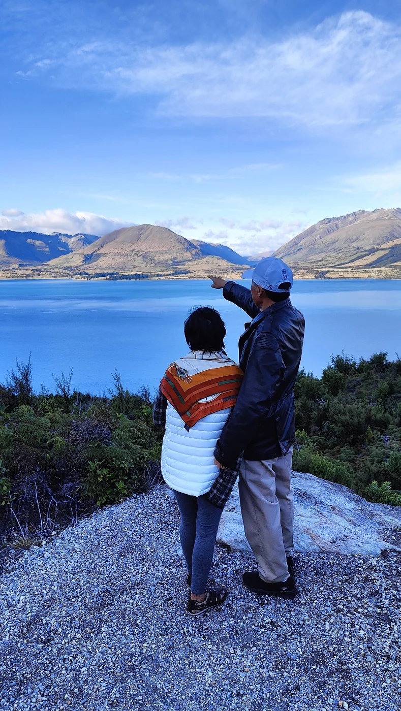 说话间到了贝内茨断崖瞭望台(Bennetts Bluff Lookout)。这是欣赏瓦卡蒂普湖、洪堡山脉、厄恩斯劳山的极妙观景处(with stunning views of Lake Wakatipu, Humbolt Ranges, and Mount Earnslaw)。