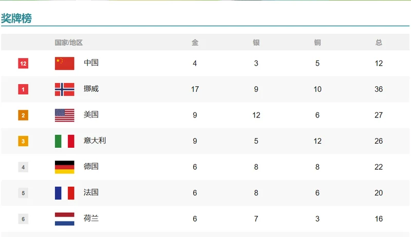 米兰冬奥3天摘4金! 中国代表团来到奖牌榜第12位