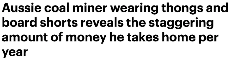 而之前,一位矿工在接受采访时爆料,他每年净收入近30万澳元。
