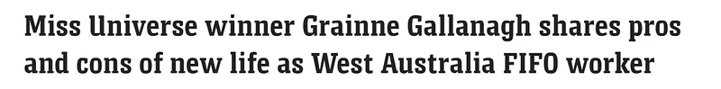 据媒体报道,Gallanagh在2023年与未婚夫搬到珀斯,她还做出了一个大胆的改变,从美丽佳人变为在烈日下工作12小时的女矿工。