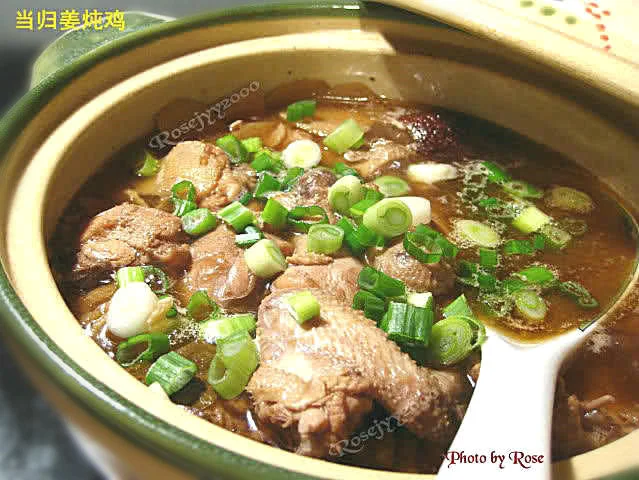 材料:鸡1只、当归适量、姜1大块(切片用)、香油适量、香叶2-3片、红枣5-8个、陈皮2大块、葱末少许。