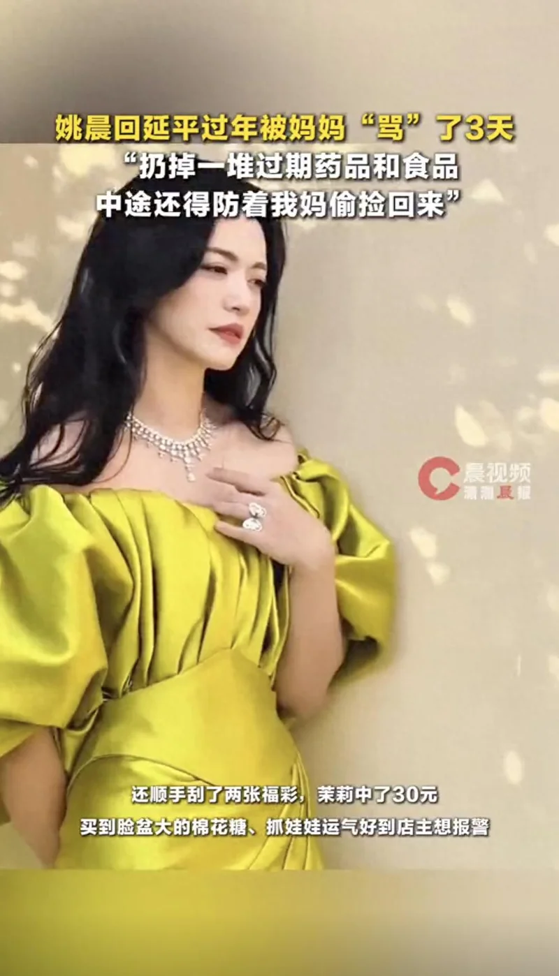 2月20日,演员姚晨发文:“今年回延平过三十,玩的还是老节目,兄妹俩在‘香樟树’吃了年夜饭。还顺手刮了两张福彩,茉莉中了30元,买到脸盆大的棉花糖、抓娃娃运气好到店主想报警。除了带小,还得扶老,三天假期没歇着,给家里做了大扫除,扔掉一堆过期药品和食品,中途还得防着我妈偷捡回来,虽然被她连骂三天,我也算尽孝了。”