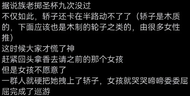 传得最凶的说法是“连着八次都没掷出圣杯”,现场有人直接把话撂明:“不是抬不动,是大家不认。”