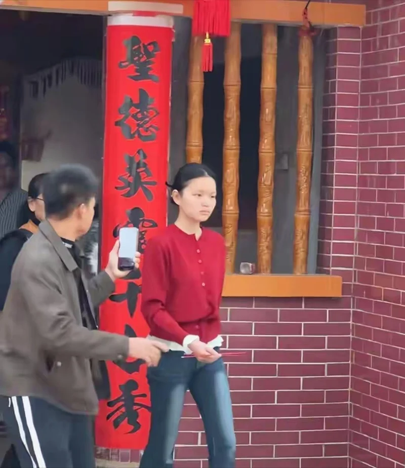 原本被认可的是红衣女孩,熟流程、压得住场,村里人也熟她那张脸。