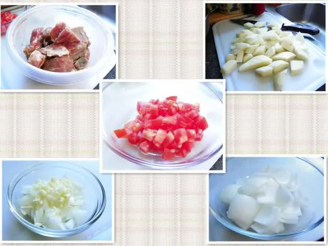 排骨0.5-0.7磅、土豆3个、番茄2(中型)、洋葱1个。