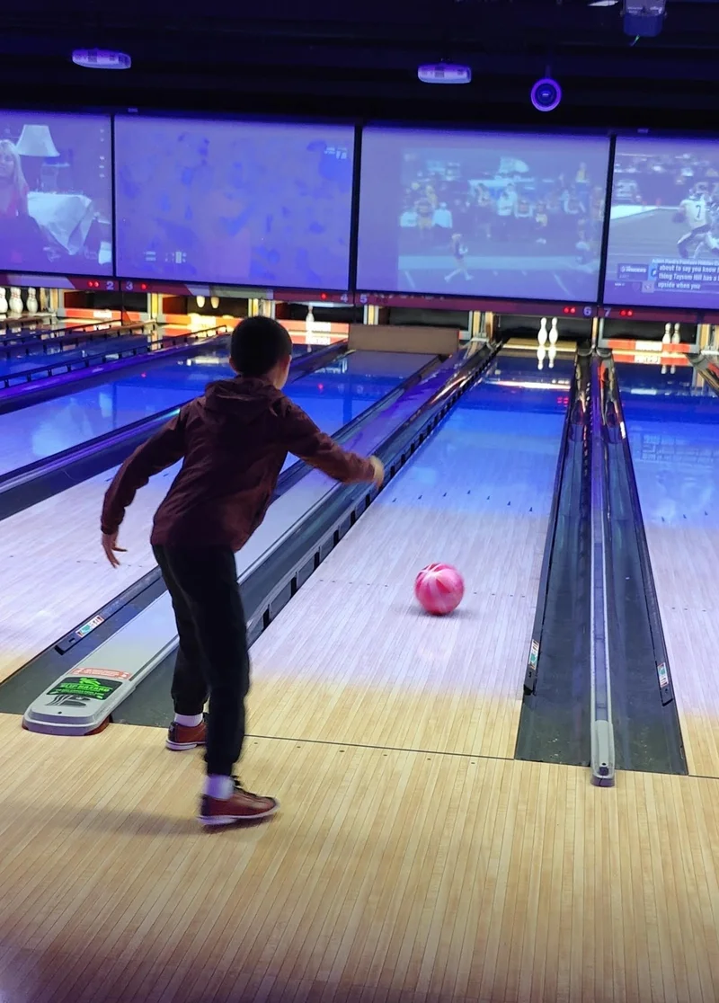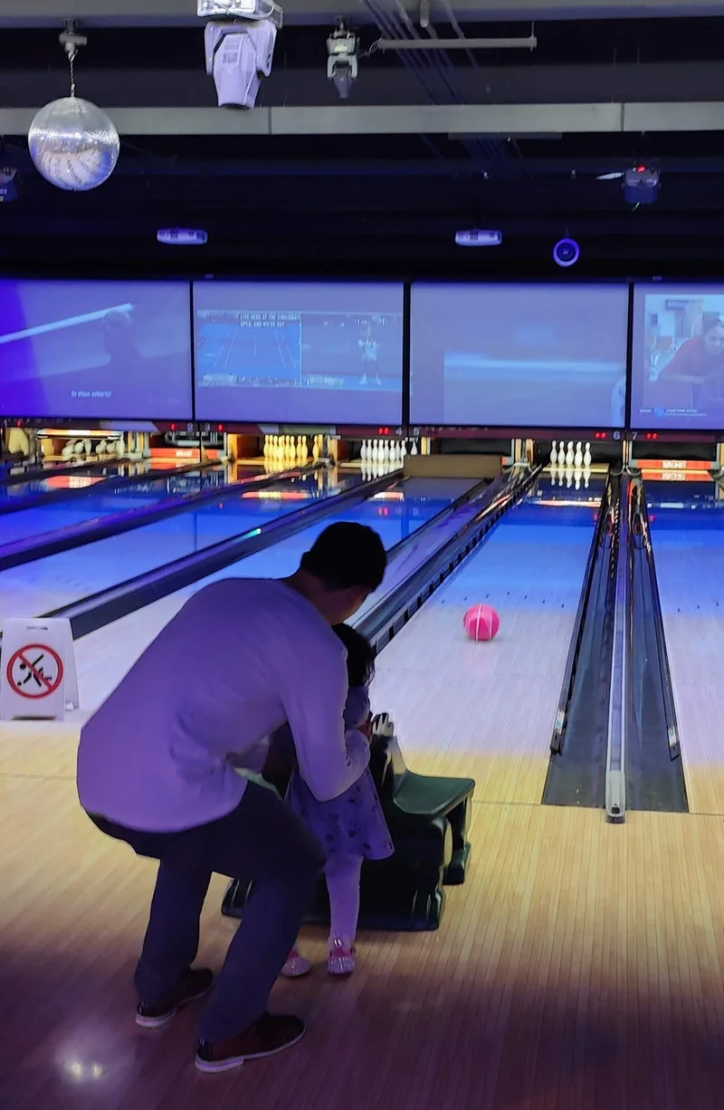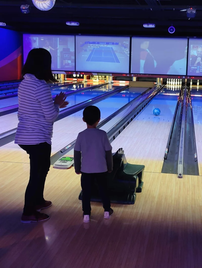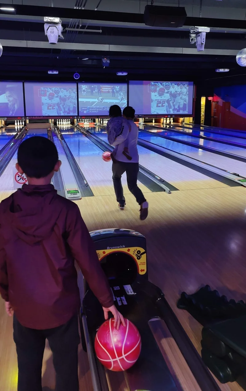 小小阿立的安排,先带孩子们去海鲜包肥所在之太阳谷笑拼中心的《Round 1 Bowling & Amusement》玩保龄球。