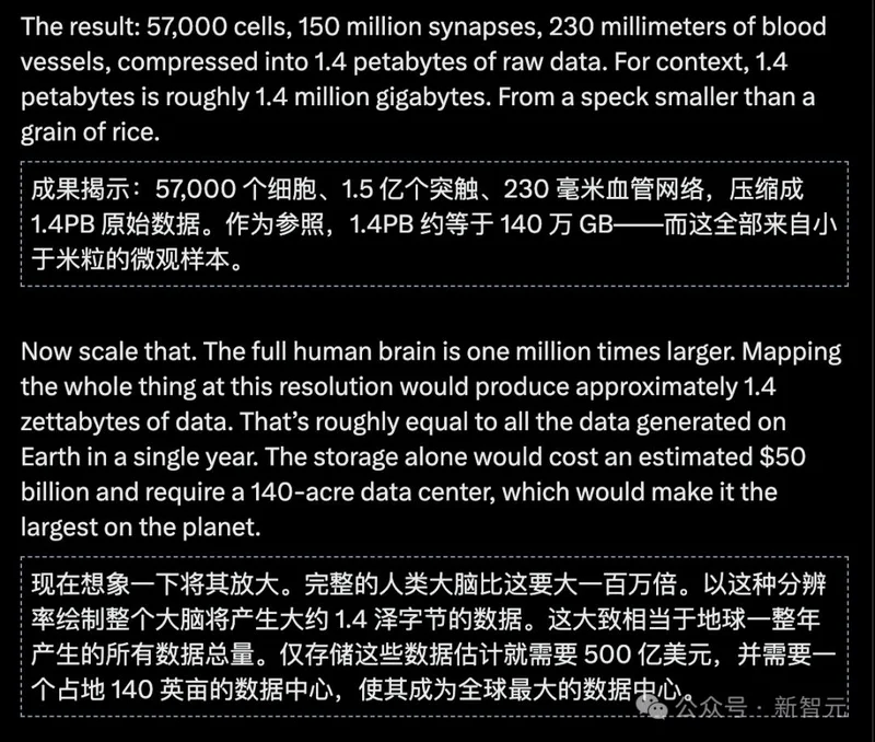 「哈佛和谷歌耗尽资源,花了十年时间,才勉强绘制出1立方毫米、比米粒还小的人脑图谱。这背后的数学复杂度和能效比,足以让地球上所有的AI实验室集体汗颜。」