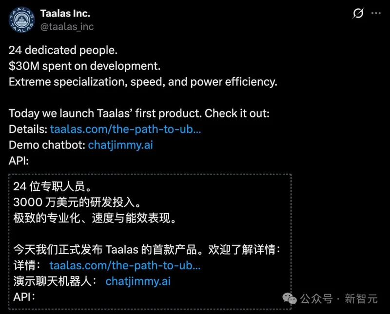 官方博客:https://taalas.com/the-path-to-ubiquitous-ai/
