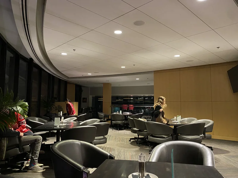 第一节,就觉得加拿大队像是少了一个人,被美国队压着打,很快就丢了一球。熟悉NHL的球迷都知道,这两支球队,全由NHL球员组成。加拿大队的锋线比美国队强,而美国队的防守队员和守门员比加拿大队强,尤其是守门员!要赢美国队,要先进球才好,不然会很麻烦。第一节结束了,饭堂里也没听到几声吆喝。