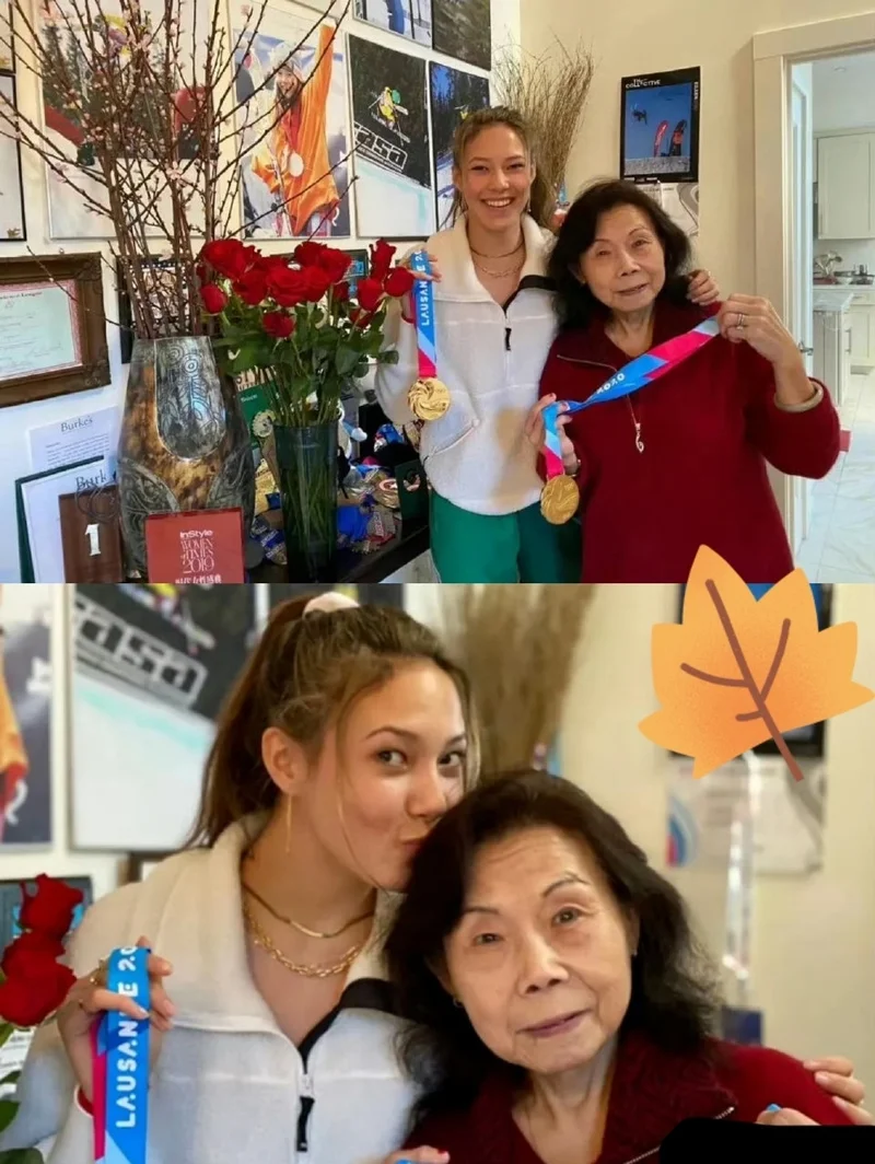 而每年暑假,谷爱凌都会跟外婆冯国珍回到中国,吃外婆做的红烧鱼,跟老人一起包饺子。
