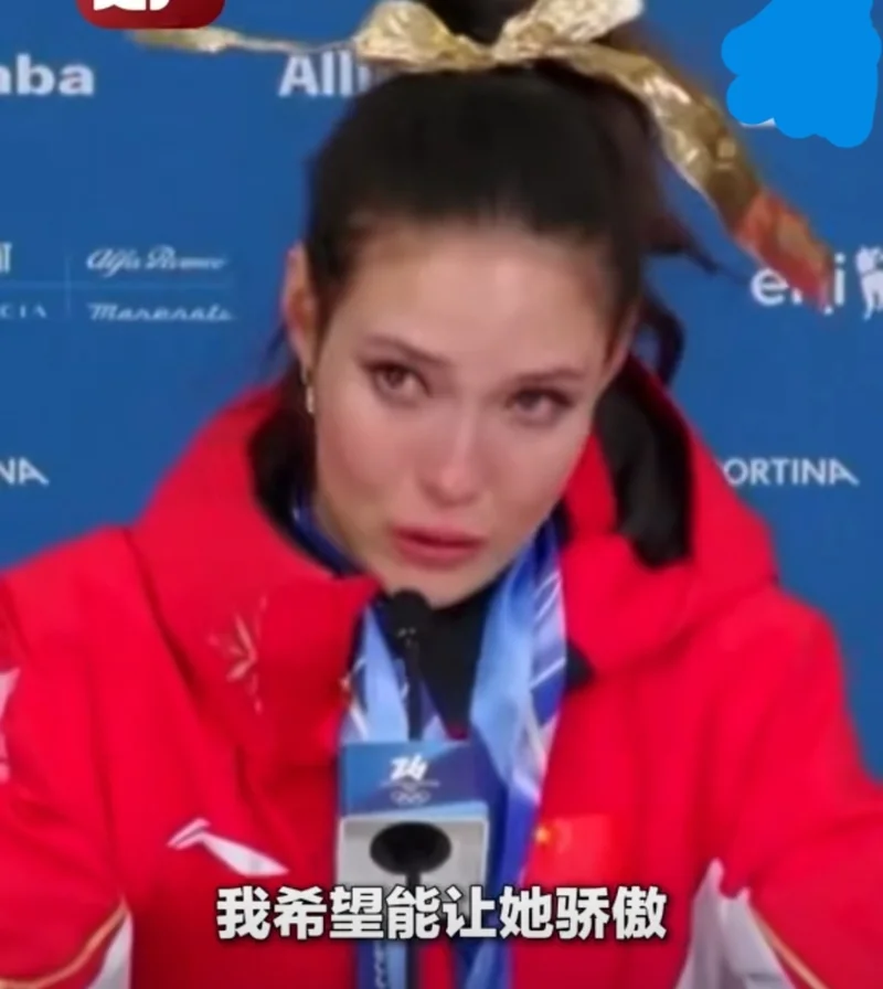 终于,在赛后的媒体记者会上,面对世界各地媒体纷至沓来的提问,姗姗来迟的谷爱凌,忍不住泪如雨下。
