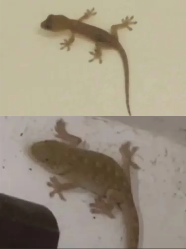 普通人家的壁虎(上)和姥姥家的壁虎身型对比(下)(PS:壁虎吃蟑螂)