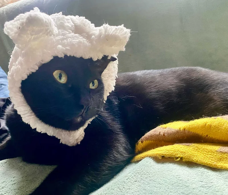 海渊兄养的黑白双猫乃海风诗社之宠爱也。今日纽约大雪,诗友们咏雪正兴起,渊兄秀黑将军戴雪帽:“雪壓眉梢雙目炯,我比烏騅將如何?”
