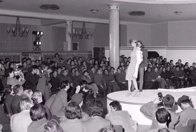 1979年3月,由法国著名时装设计师皮尔·卡丹率领的法国时装表演团在北京民族文化宫举行服装表演。这是中国改革开放后举办的第一场时装秀,台上衣着的多姿多彩与台下的一片“灰、黑、蓝”形成鲜明对比