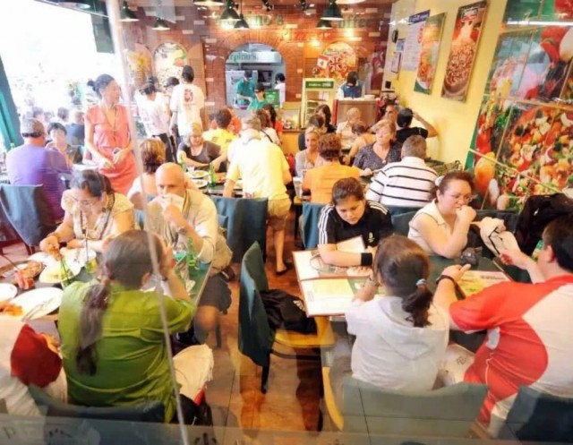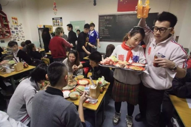 2012年1月,在天津“80年代”主题餐厅,身穿校服的服务员为顾客上菜。整个餐厅像教室,消费者叫做“同学”,在餐厅用餐需持有身份证证明自己是“80后”,受到众多来此追忆学生时代的消费者热捧