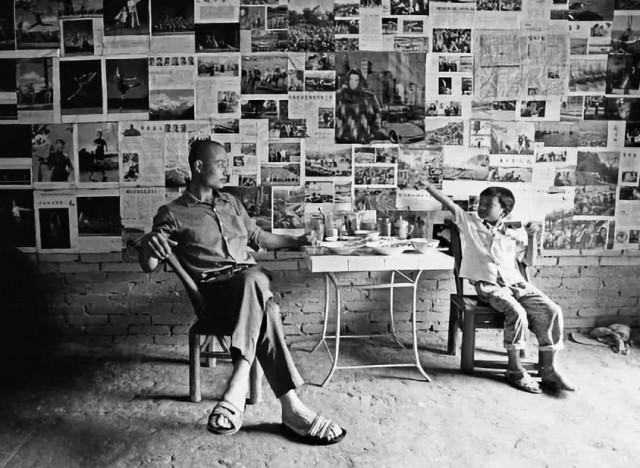 1993年5月31日,在三峡中堡村12组移民赵春和的新家,保存多年的《红色娘子军》画报成了时髦的贴墙纸,右边是他7岁的外甥汤福军