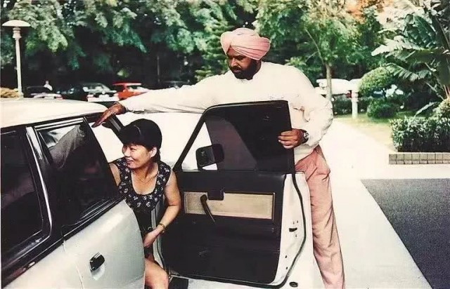 1993年,酒店前的一位印度门童在帮客人拉开小轿车的车门