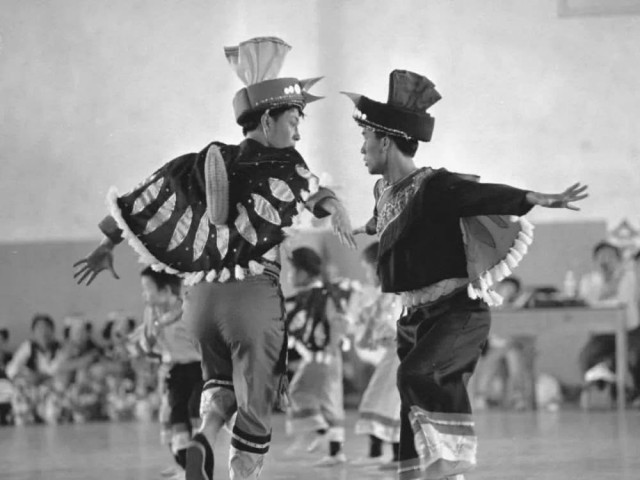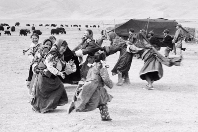 1964年,青海省海南藏族自治州河卡乡的小学生们在做老鹰抓小鸡的游戏