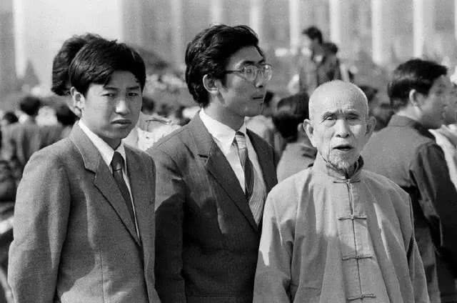 1986年,北京,一位老人和他穿西服的孙子