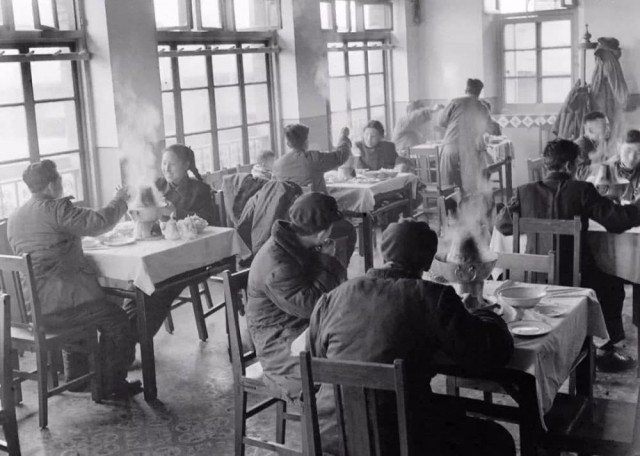 1957年初冬,北京东来顺餐厅一角。东来顺是北京著名的涮羊肉餐馆