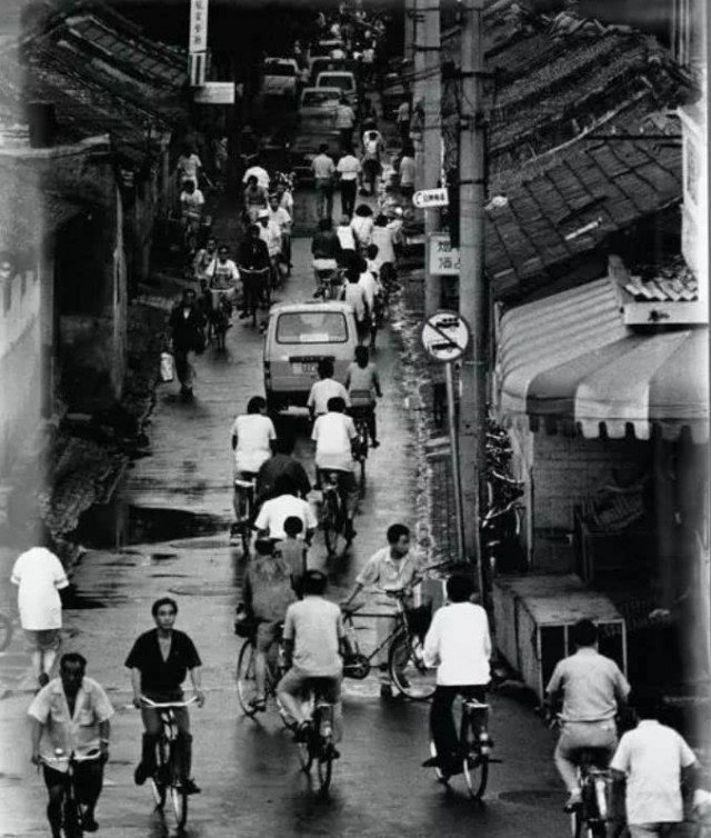 自行车是当时人们主要的出行工具,图为1960年代的北京胡同