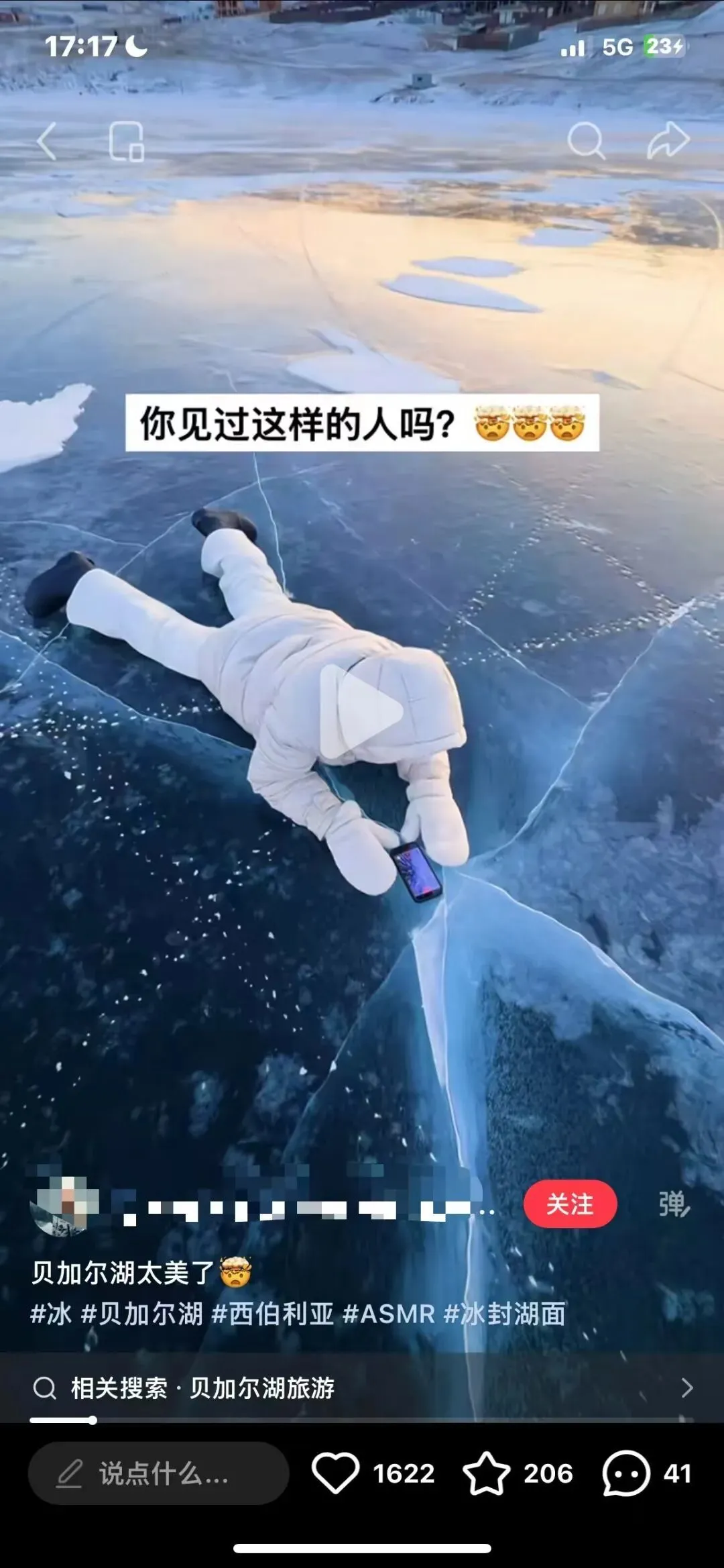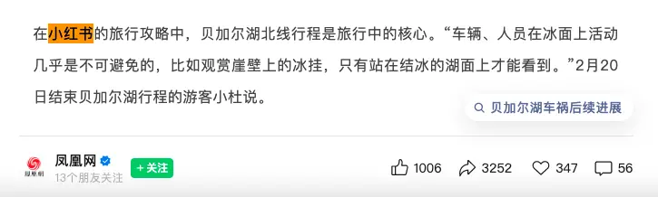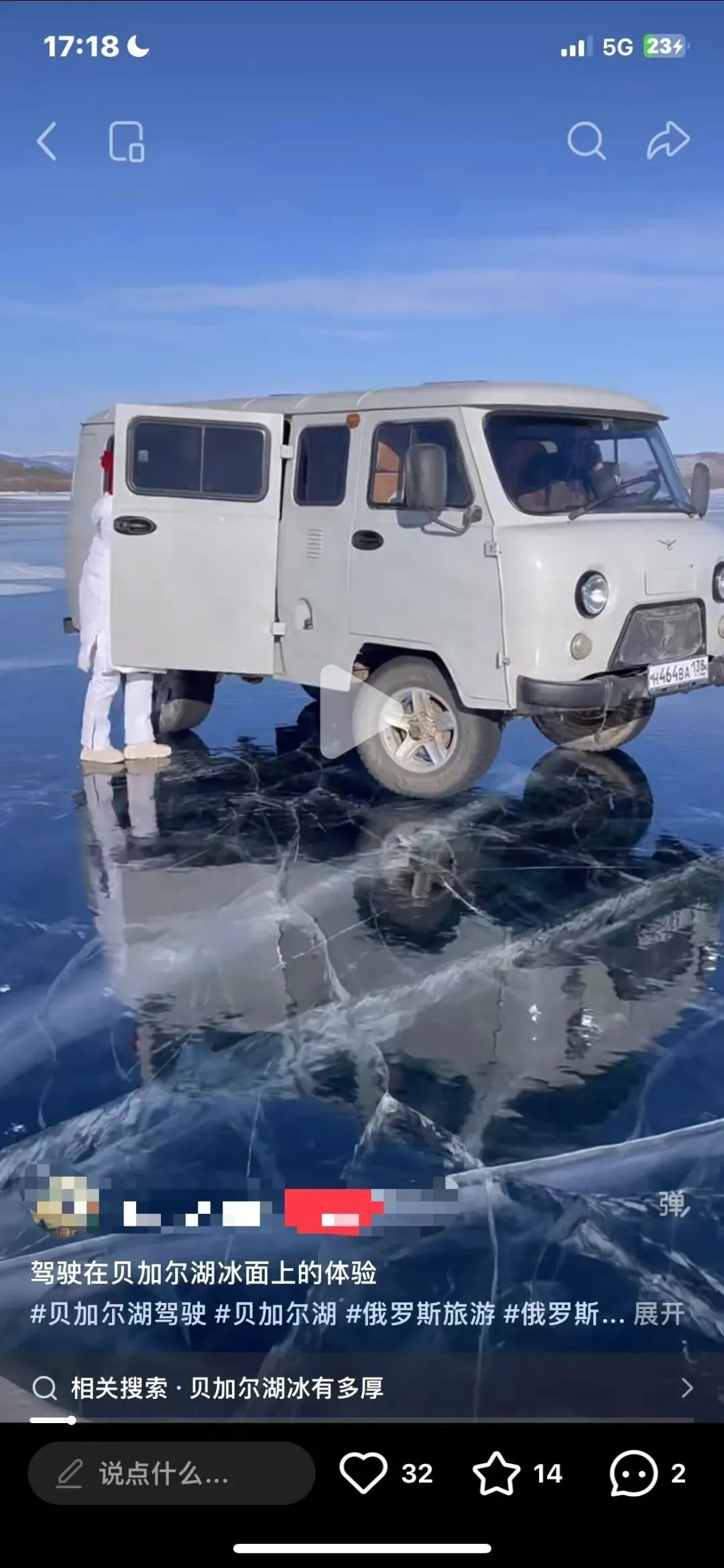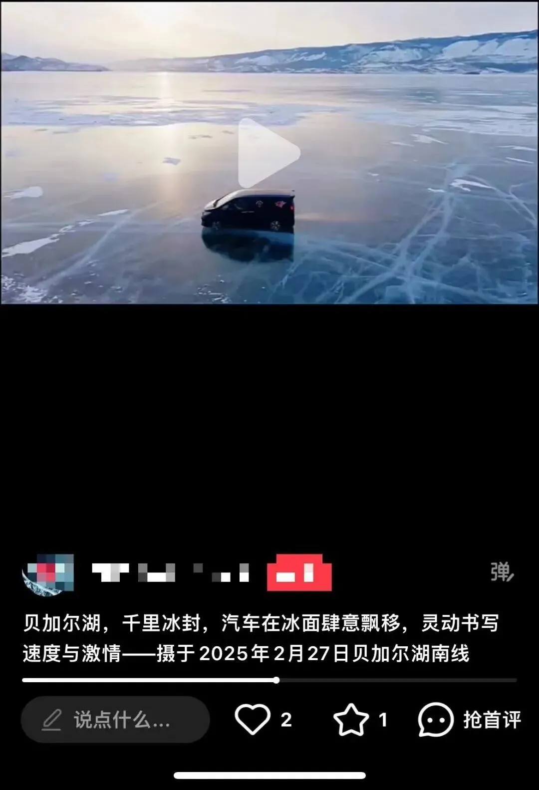 我去小红书上看了一下,直到悲剧发生前,这里仍充斥着“勇者的挑战!水路两栖勇者从来不抱怨环境”“贝加尔湖,干里冰封,汽车在冰面肆意飘移,灵动书写速度与激情”的笔记。