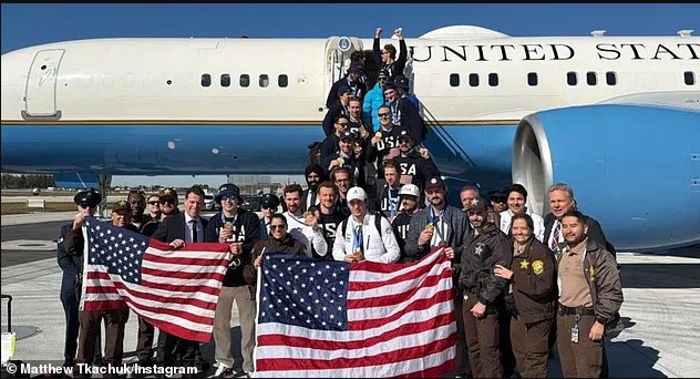 为了庆祝这次夺金,总统川普专门派出一架美国空军757专机,从佛州将金牌队员接往华盛顿。