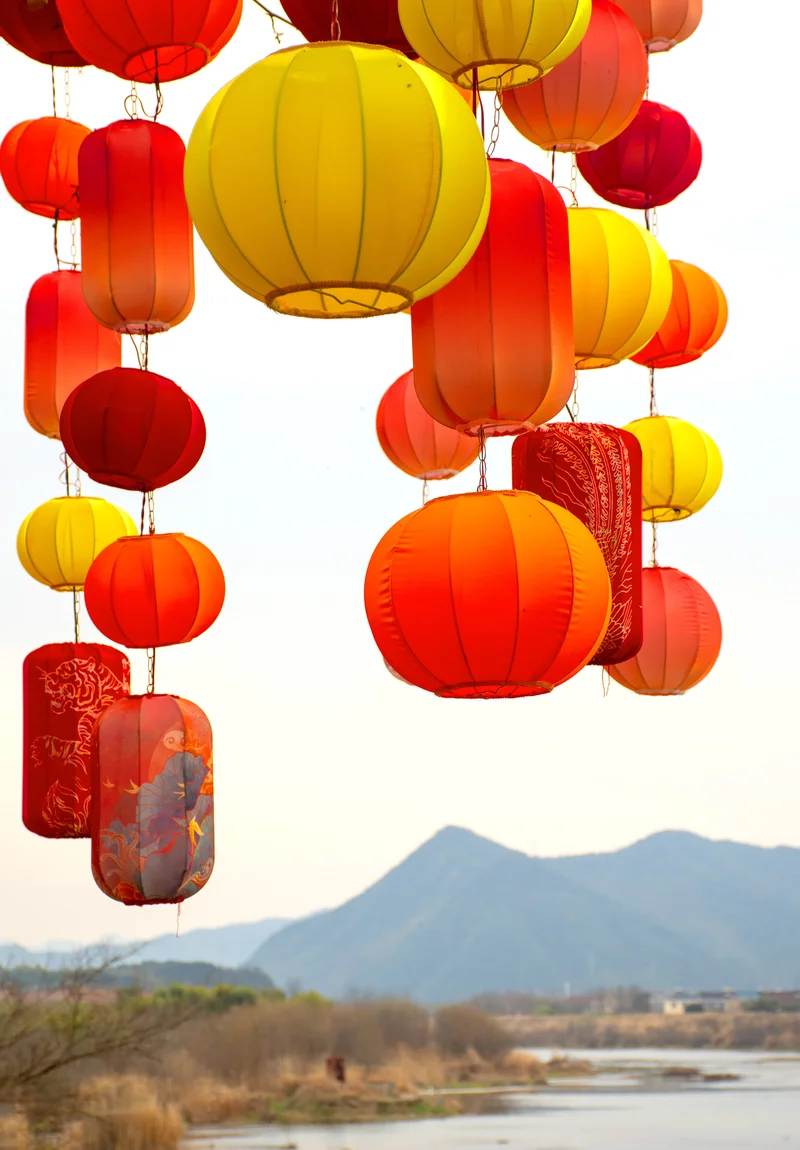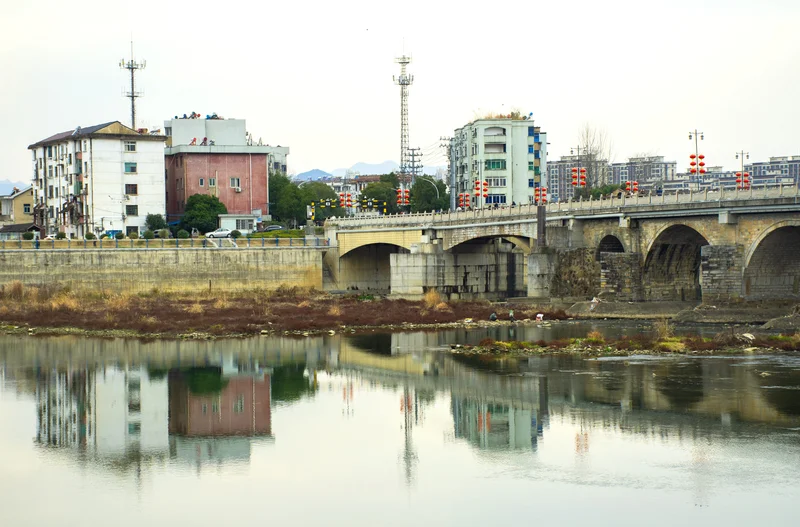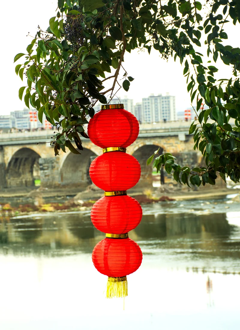 春节期间,访亲拜友在此小住。数十年来,虽然山城的面目今非昔比, 但是青山依在,溪水长流。乡音乡俗仍然悦耳爽眼。站在那坐古老的来福桥边,见河水缓缓流来,高高挂着的红灯笼在黛色的远山和清清的河水衬托下分外吸人眼球。