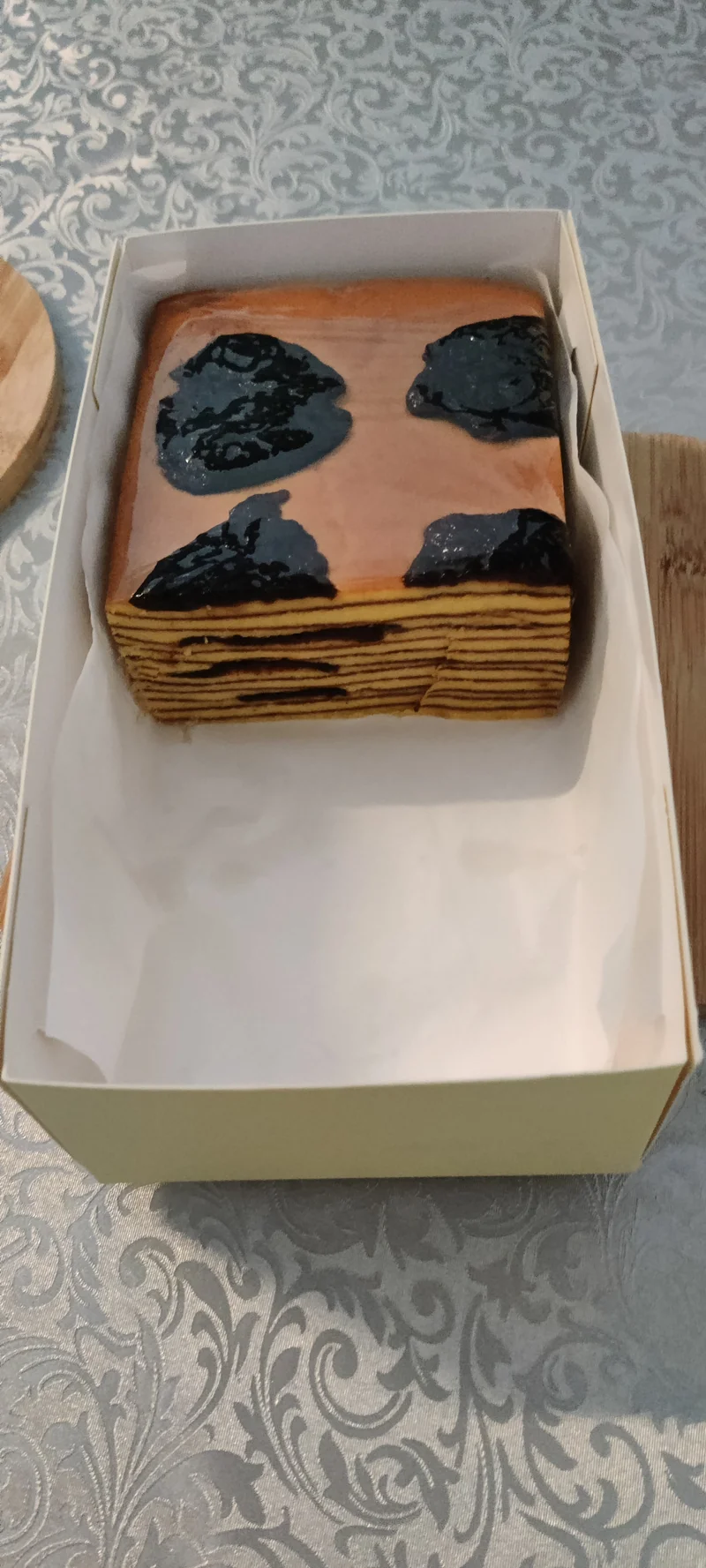 昨天晚上,我的一位台湾朋友,是开家族公司的老板,他们公司有人去巴淡岛旅游,带回一些千层糕,送他。我这位朋友做人很好,前一阵请全公司的员工去越南旅游。遇到这样的老板,真是幸运。员工出外旅游,都念着他的好,特意送几盒千层糕,请他品尝,他送我一盒,也让我分享这异国他乡的美食。