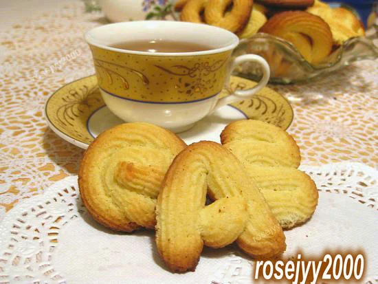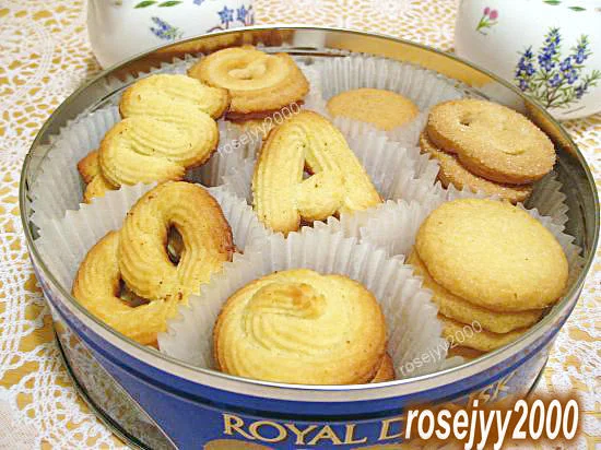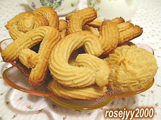 黄油113g,菜油25g,糖60g,炼奶3汤匙,蛋1只,盐1/8茶匙,香精1/4茶匙,水煮蛋的蛋黄2个,低筋粉250g。