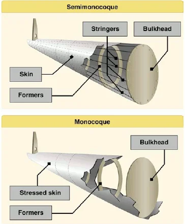 It is built by attaching metal skins to internal formers and longitudinal stringers, with a maximum width of 1.24 meters to reduce drag.
