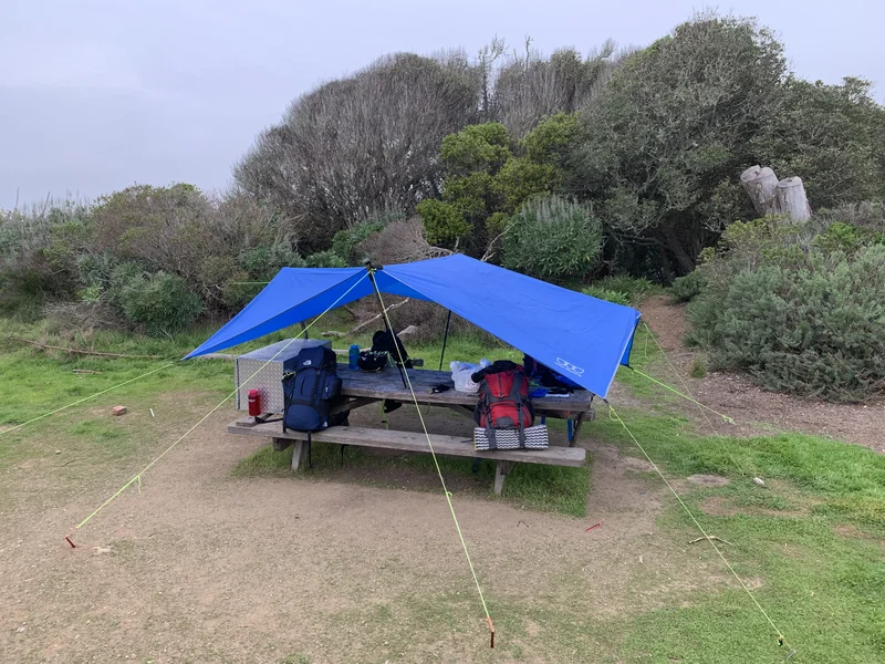 我们避雨用的tarp,晚饭和饭后的游戏都在下面完成,因为不久之后,天上就开始飘起了小雨: