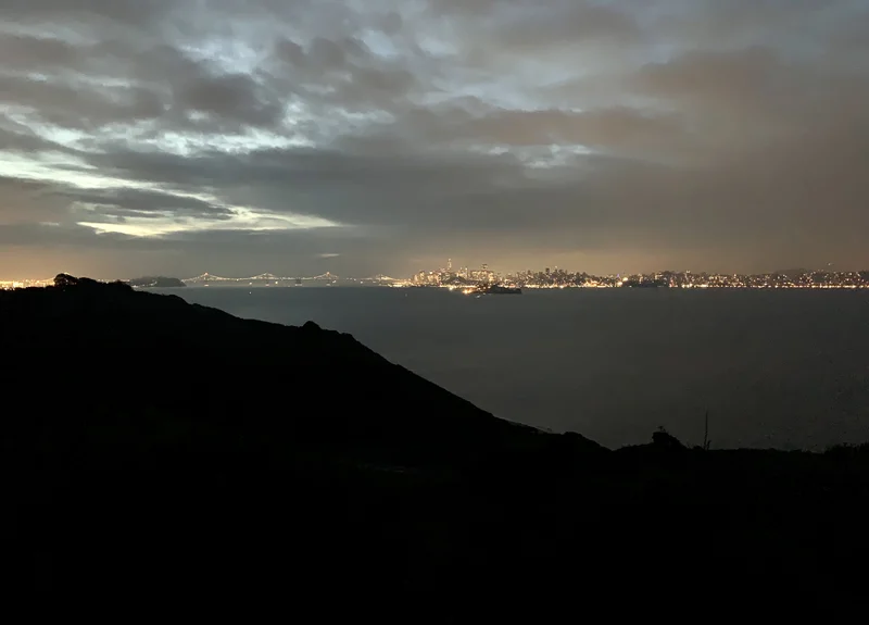 远处就是灯火通明的旧金山市区,但这可不是我们想要的景色啊,只能祈祷明天的天气转好啦。