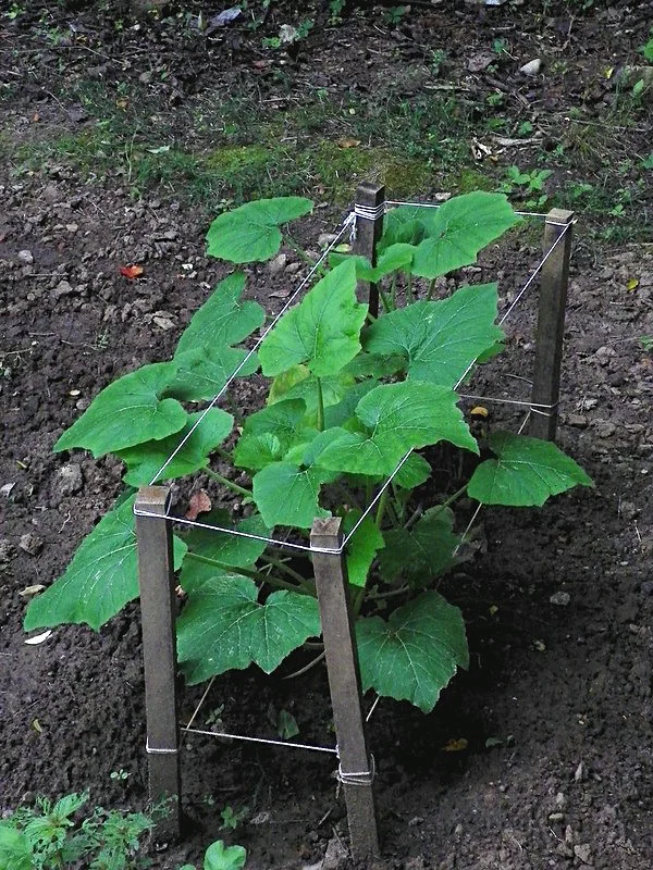 Zucchini,一时没想清楚,插了短棍,过些时候改长的,好架起来。