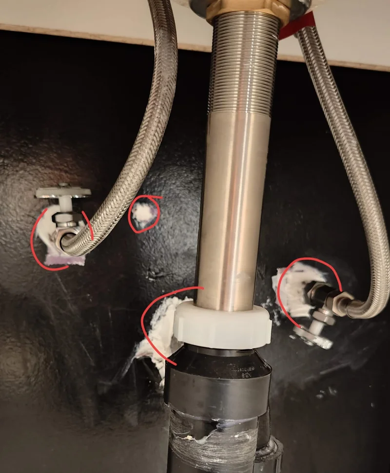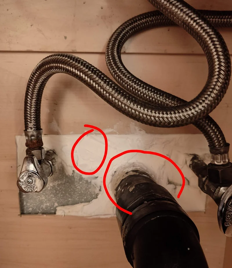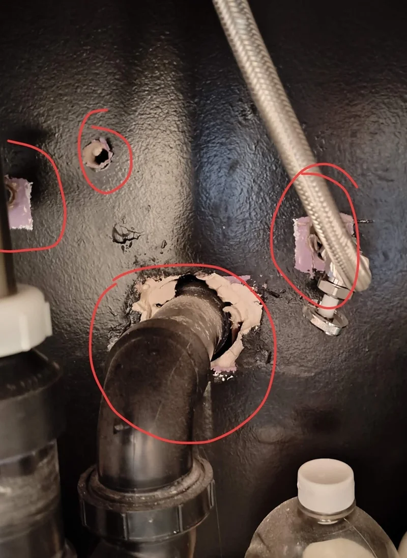 隐藏在洗脸柜里的漏洞和裂缝也都堵住了: