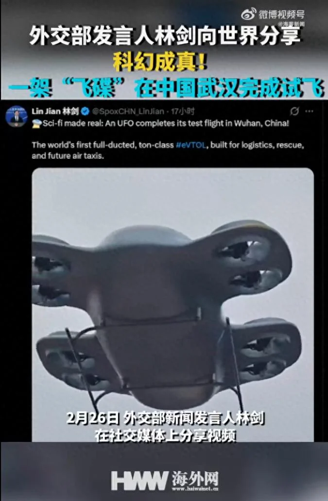 2月26日,外交部新闻发言人林剑在社交媒体上分享视频。林剑在贴文中说:科幻成真!