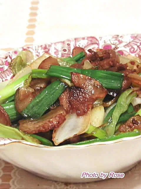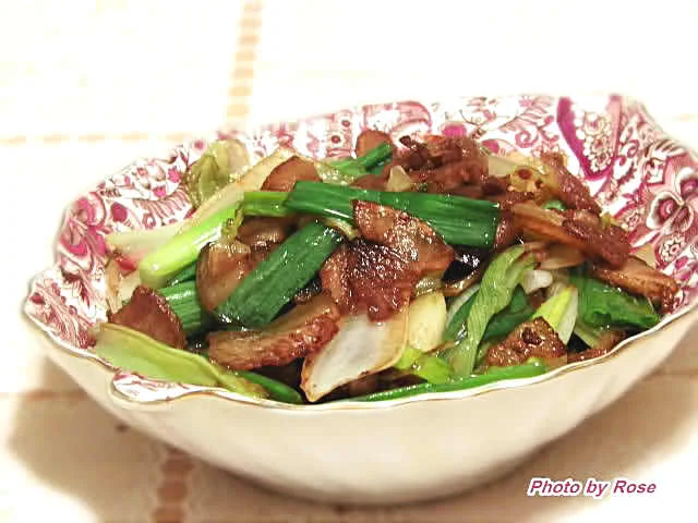 乔州的大葱比较出名的,个头大,强壮,用它来炒回锅肉一定很香。但这次做的回锅肉,我对它是很不公平的,用的是做烧肉裁下来的边角料,不过效果似乎不错,爽而美味。