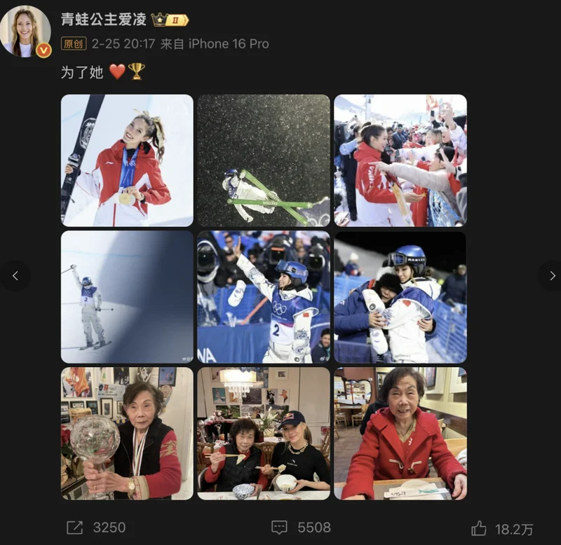 谷爱凌从小在美国成长,但中文流利、对中国文化有深厚认同,这与外婆密不可分。