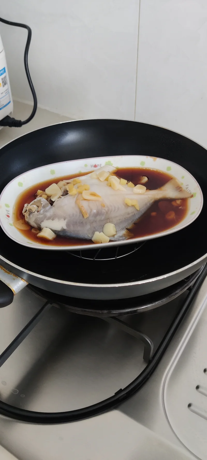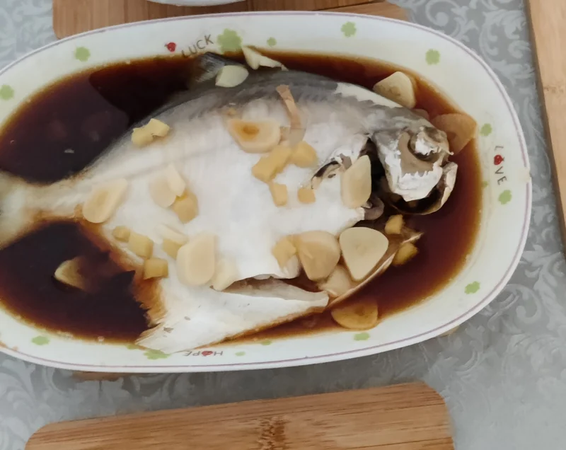白鲳洗净,放上生姜、大蒜、生抽、料酒放入锅中蒸,上气10分钟,已好!