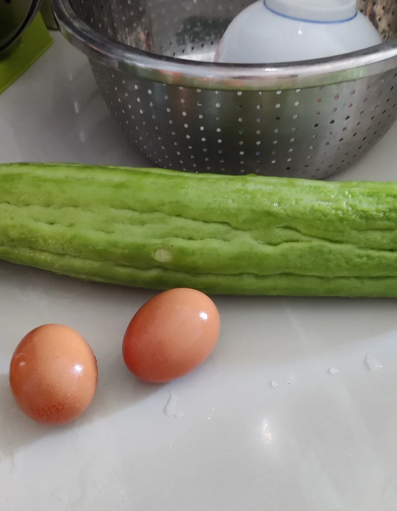 一根大苦瓜是今天的主角,清热解毒,有降血脂血糖的作用,配合两个蛋, 等一下炒一下。