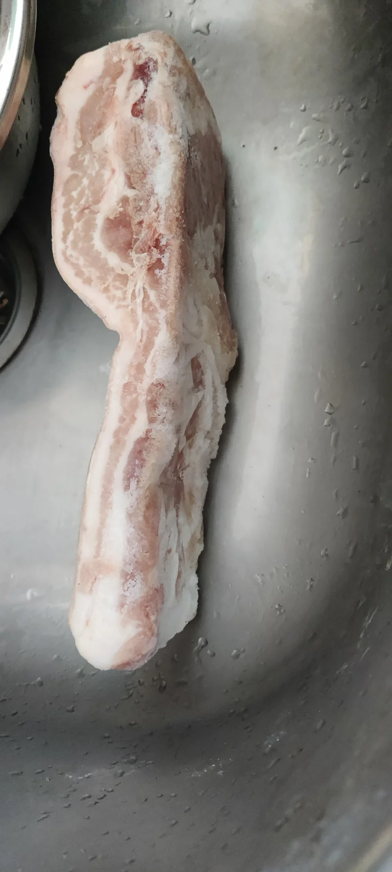 五花肉解冻,等一下与梅干菜一起红烧,这块五花肉不错,肥瘦相间,这家梅干菜是国内电商买的,质量很好,很干净,一点沙子都没有,本地超市的梅干菜要洗很多遍,还是有一点沙子。