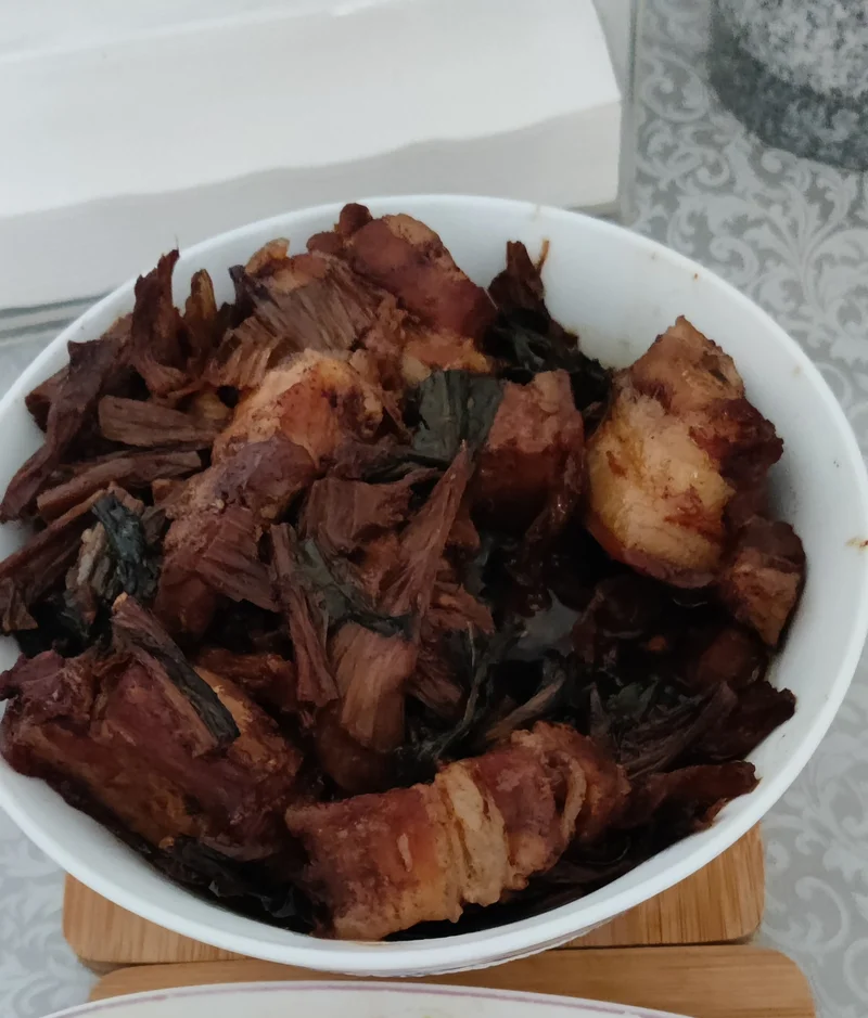 五花肉、梅干菜已煮好。