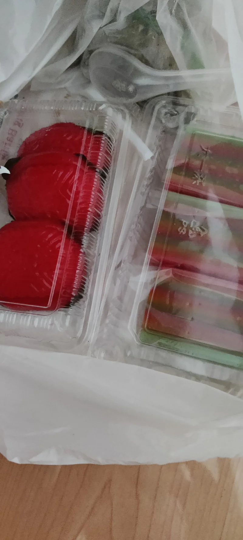 今日小点心,叫了外卖,有粽子、红龟粿、娘惹糕。