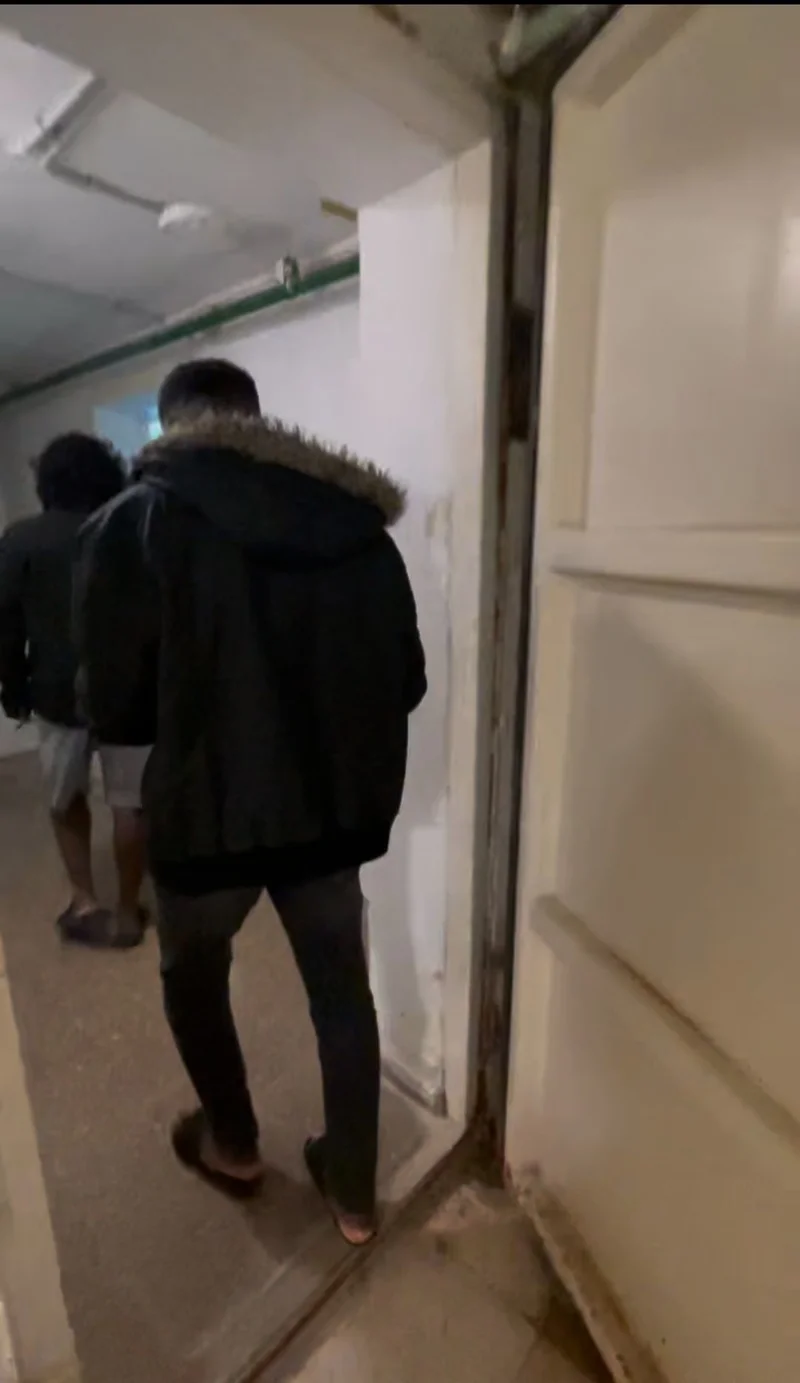在以色列耶路撒冷希伯来大学,学生听到防空警报后立即躲进防空洞(来源:受访者)