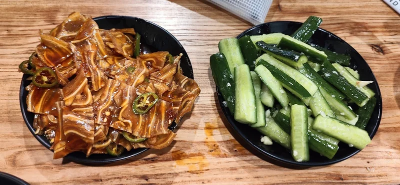 红油猪耳、蒜泥黄瓜: