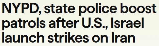 据哥谭派和NBC等媒体2月28日综合报道 纽约民众周六清晨醒来时获悉,在长达数周的威胁言论之后,美国和以色列已对伊朗发动大规模军事打击。因此,为了防止遭到袭击,纽约进入了“高度戒备”状态。