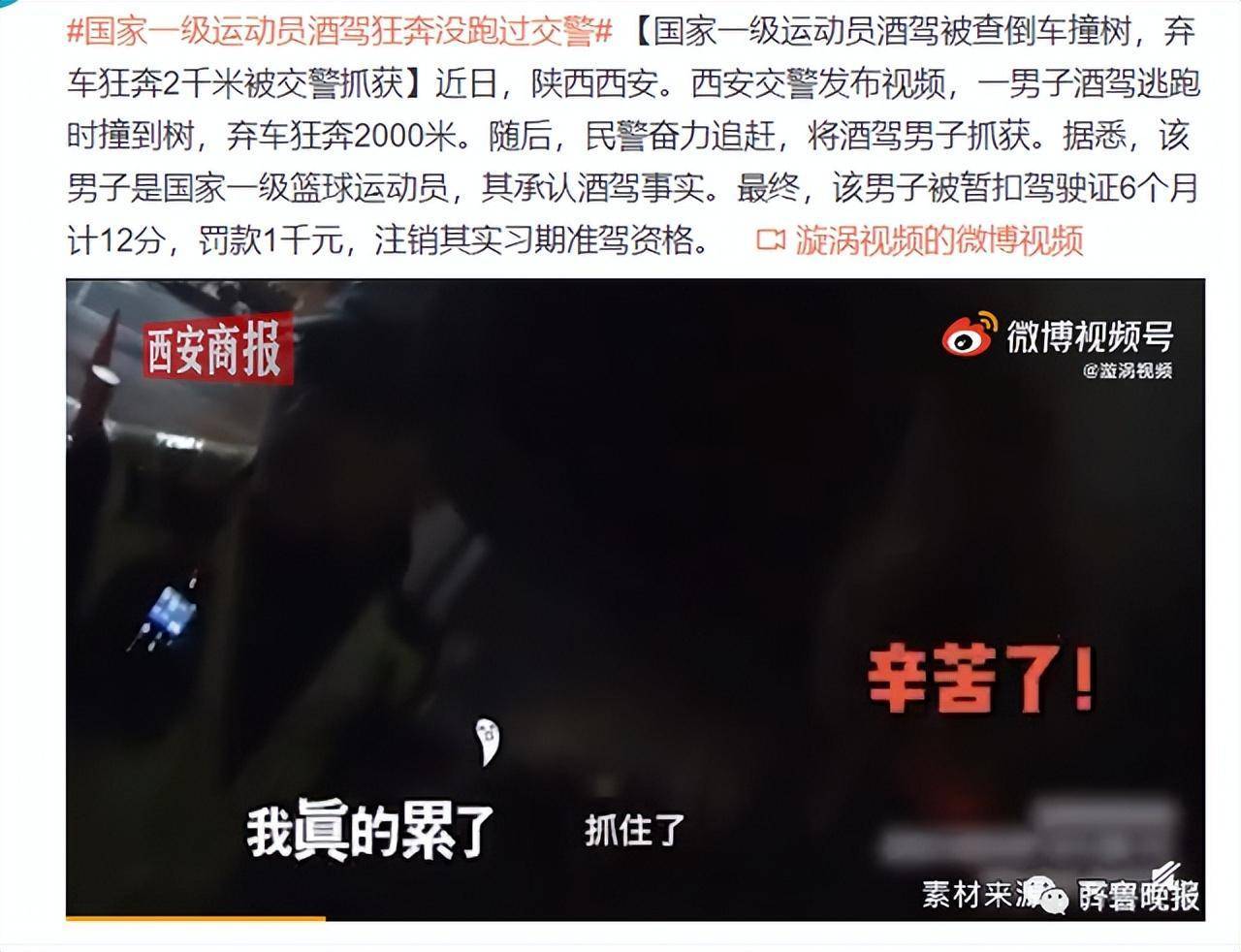 另外西安交警也发布过一则消息。一男子酒驾逃跑时撞到树,弃车狂奔2000米。民警奋力追赶,还是将酒驾男子抓获了。据悉,该男子还是国家一级篮球运动员,同样没跑过我们人民警察。