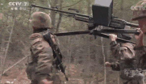 ▲89重机枪三名战士抬着跑
