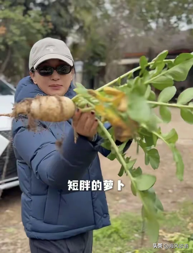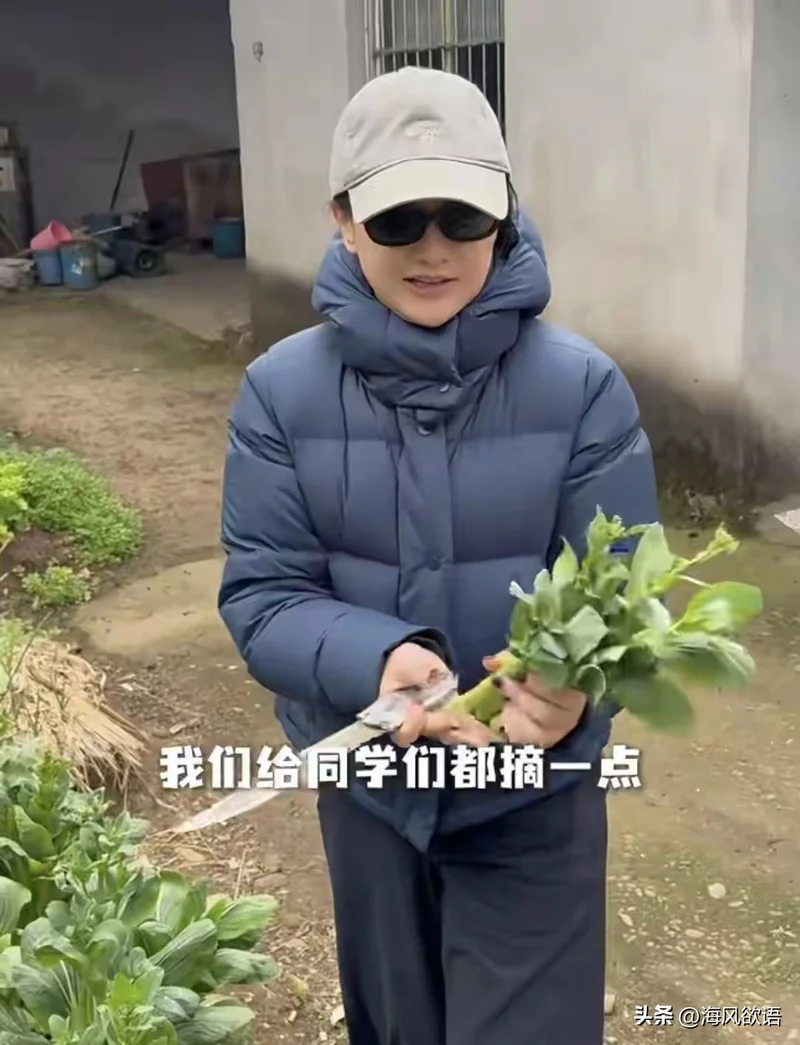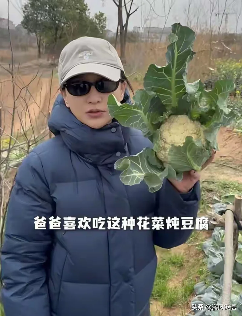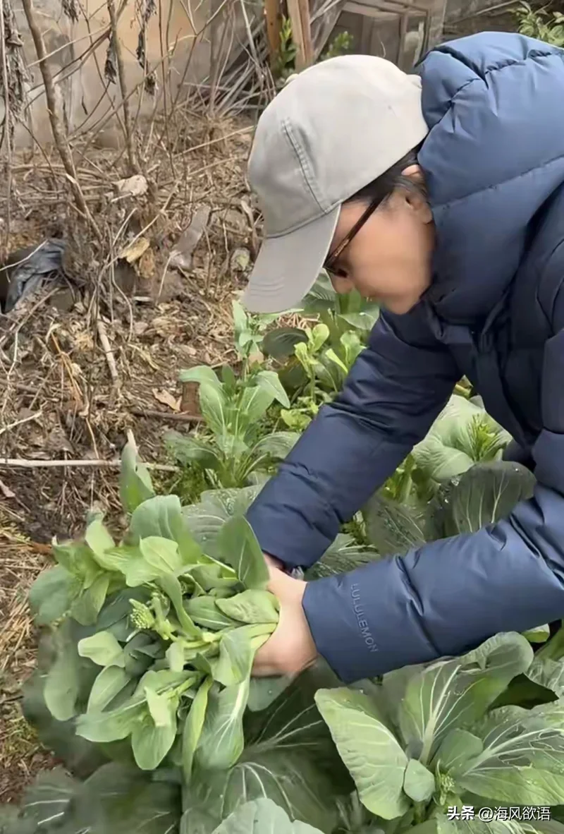 视频里的周迅穿着休闲装,帽子一戴,直奔菜地。摘菜心、拔蒜苗、挑花菜,动作熟练一点不生疏,还念叨着爸爸爱吃花菜,要带回去给家人吃。全程自己动手,说说笑笑,一看就是从小在老家生活过的样子。
